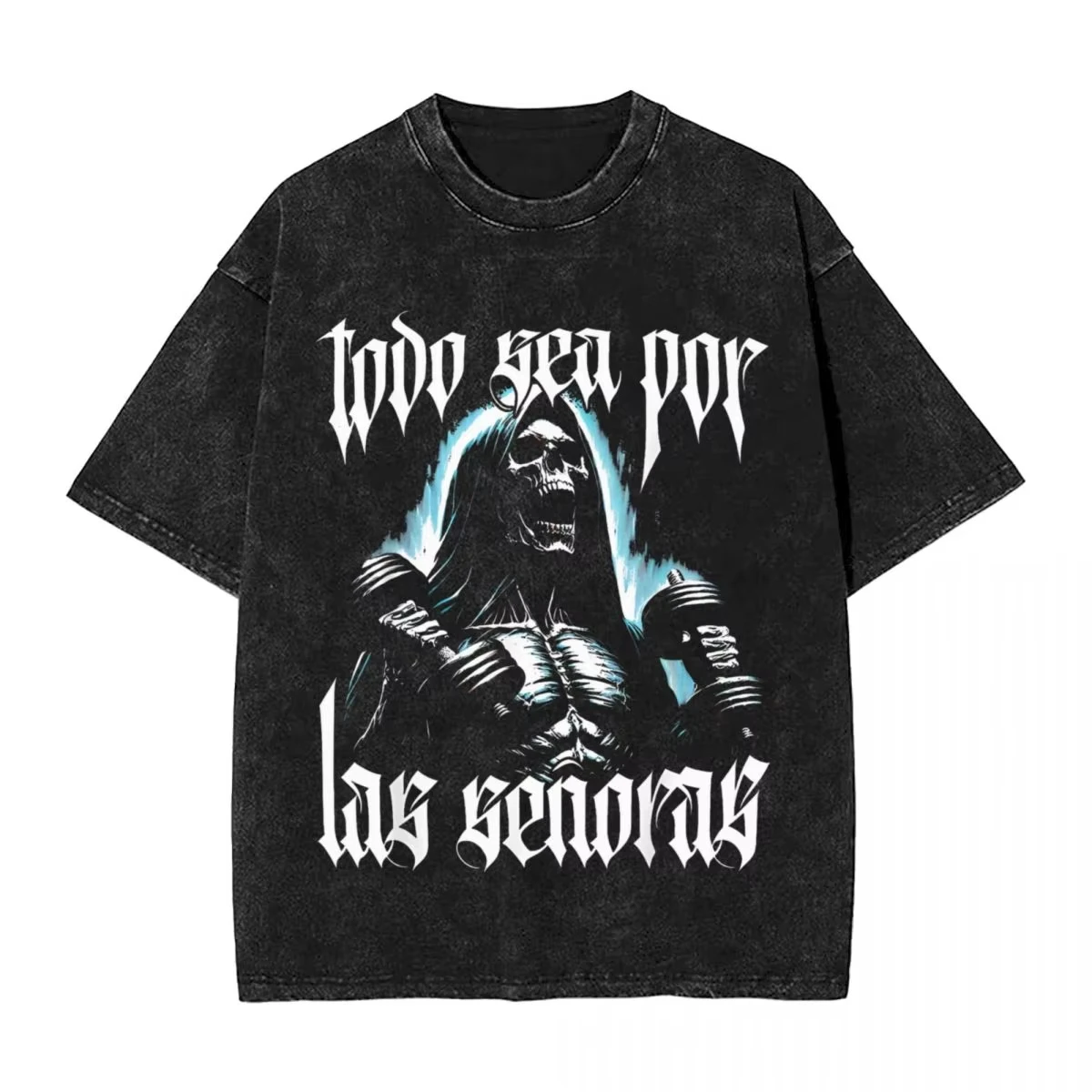 Men's T Shirt Calacas Chidas Gym Washed T-Shirts Trendy Cool Todo Sea Por Las Senoras Summer Tees Aesthetic Simple Casual Tops