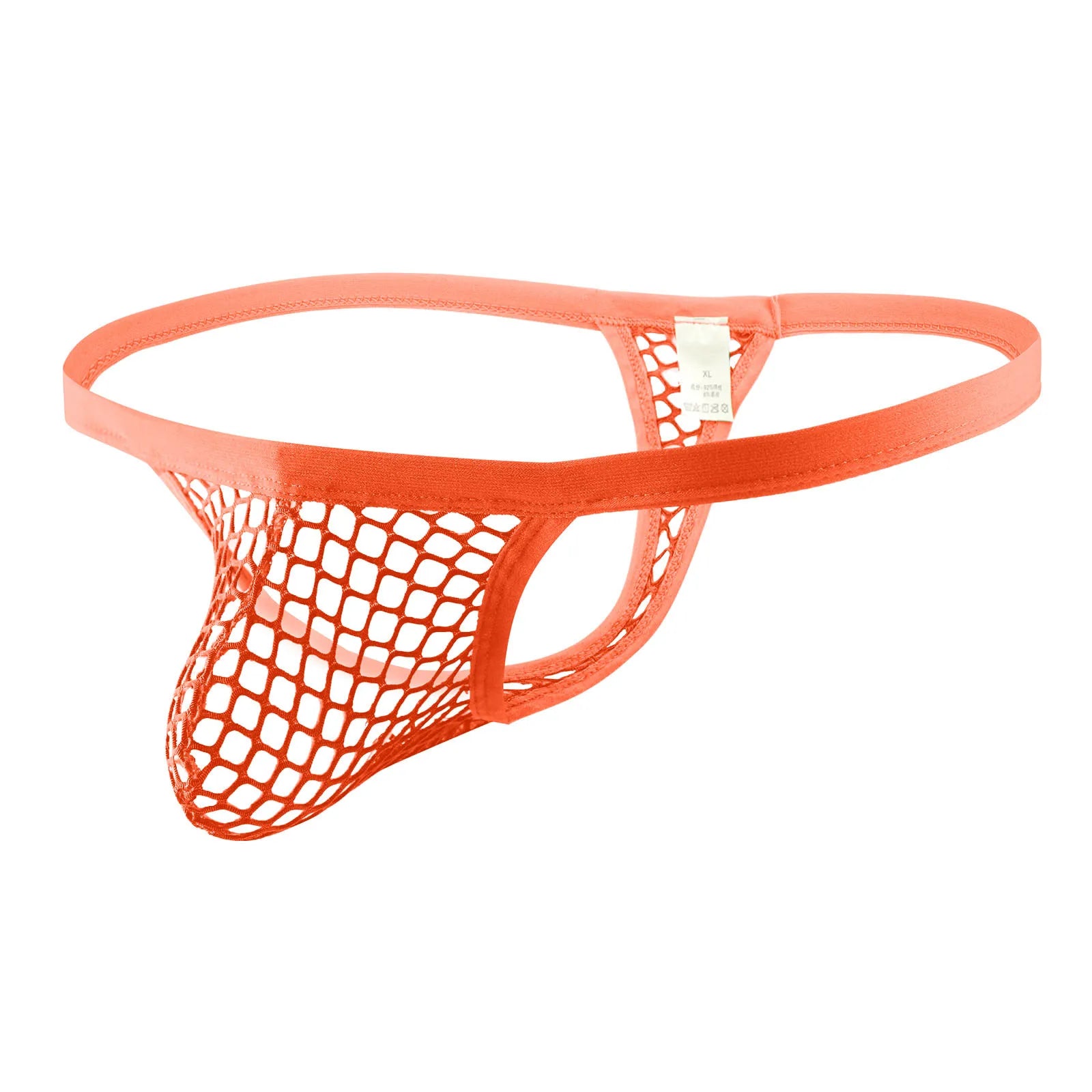 Men's Underwear Sexy Thong Pouch Plaid Mesh Hollow Comfortable Men's Underwear Summer Breathable Underpants U Convex Lingerie