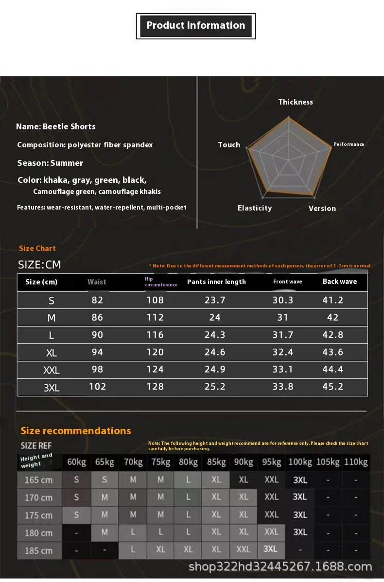 Men's Unisex Casual Outdoor Tactical Shorts New Beetle Range with Webbing Waistband Wear-Resistant Waterproof Training Pants