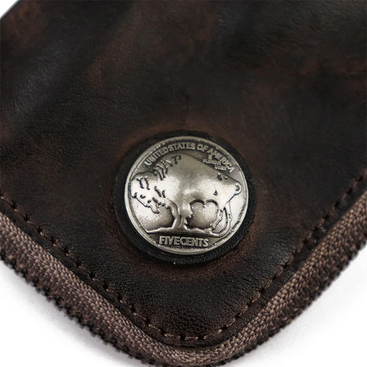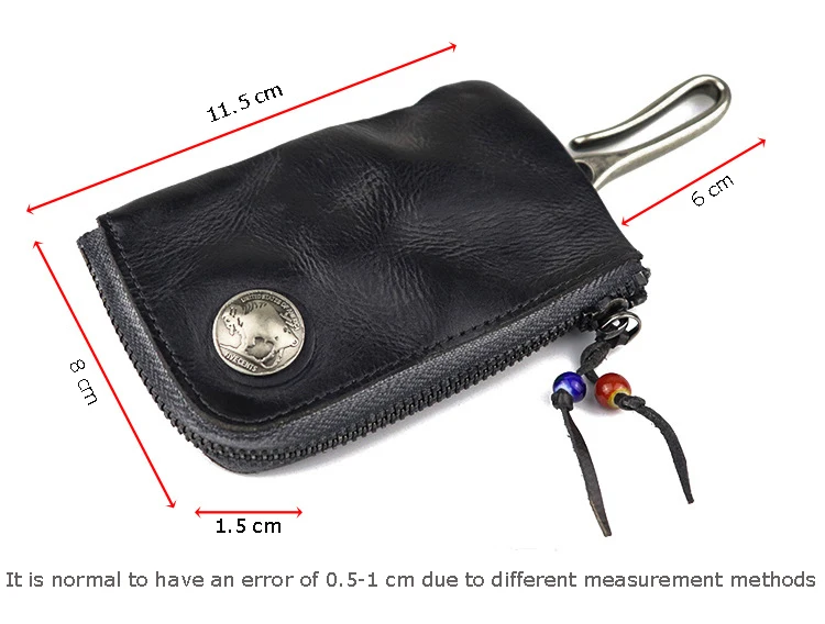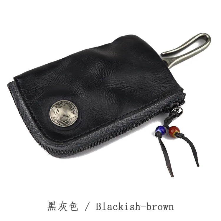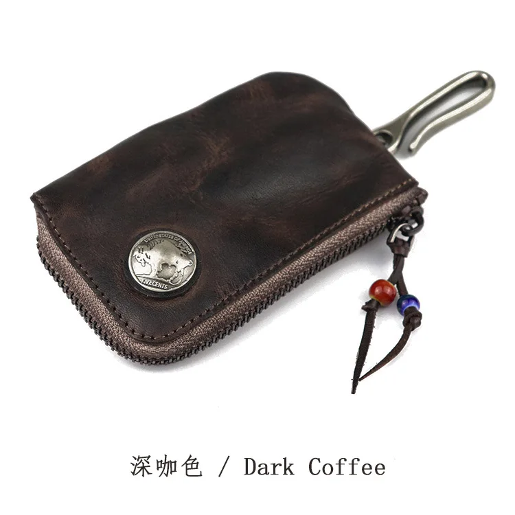 Natural Leather Key Wallet for Men Short Zipper Car Key Holder Real Leather Coin Purse Card Case Bag Keys Organizer Housekeeper