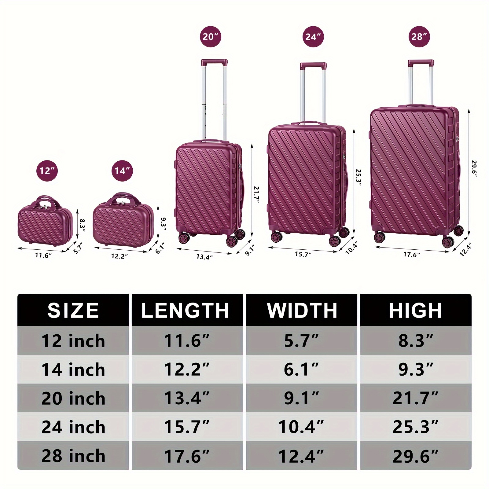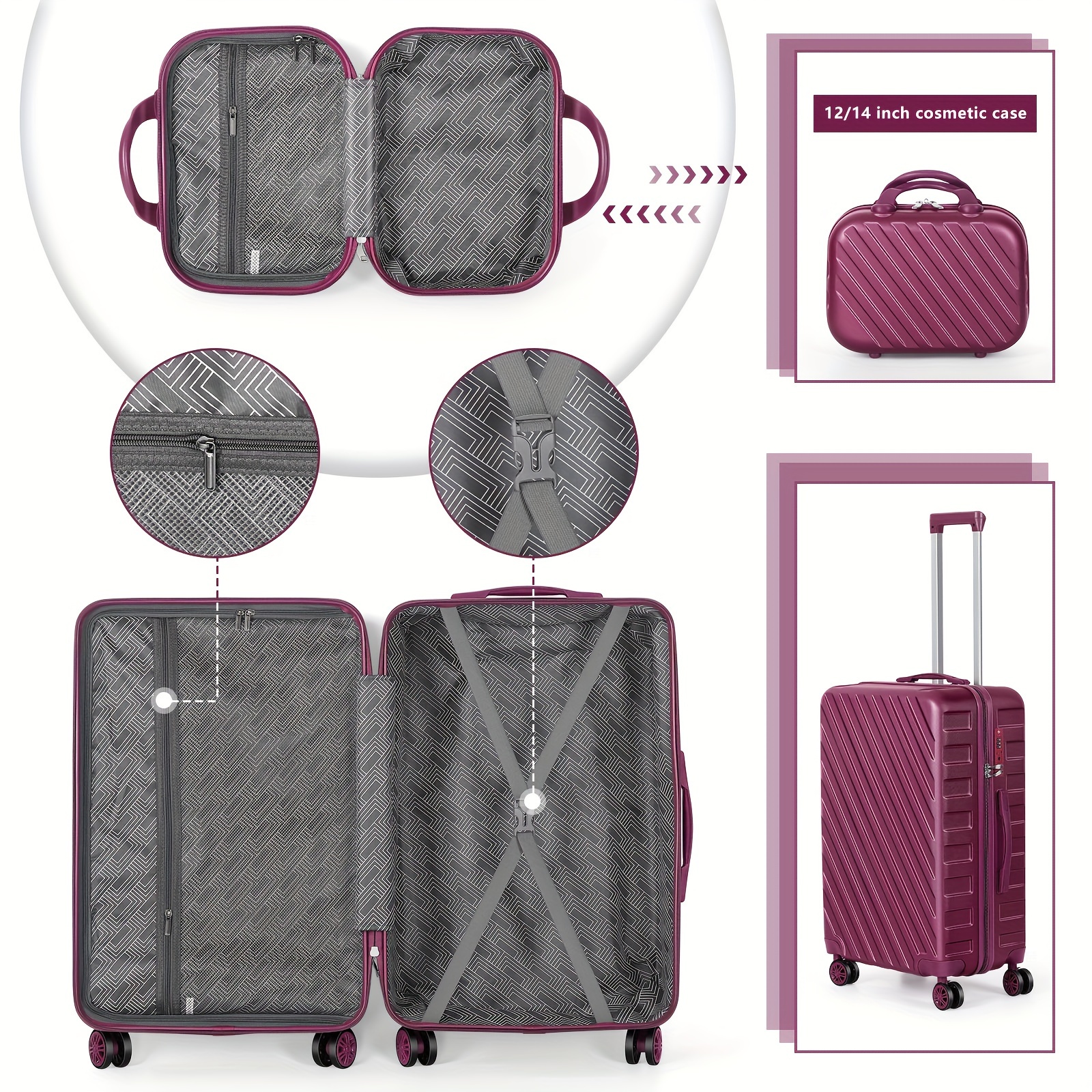 Purple 5-Piece Hardside Luggage Set With Spinner Wheels And TSA Locks, Lightweight Bag With Handle