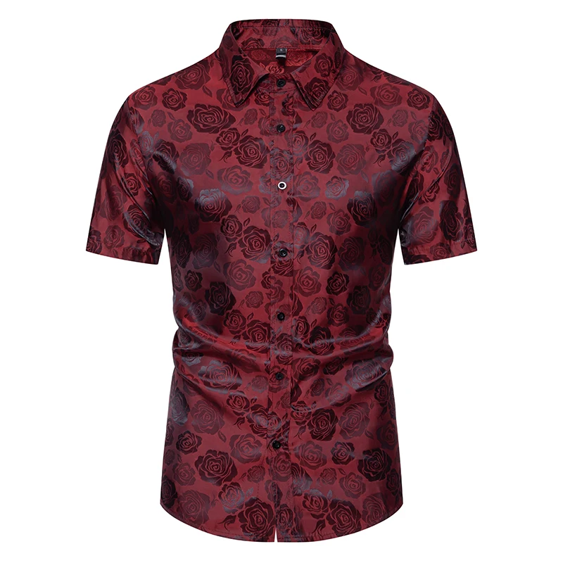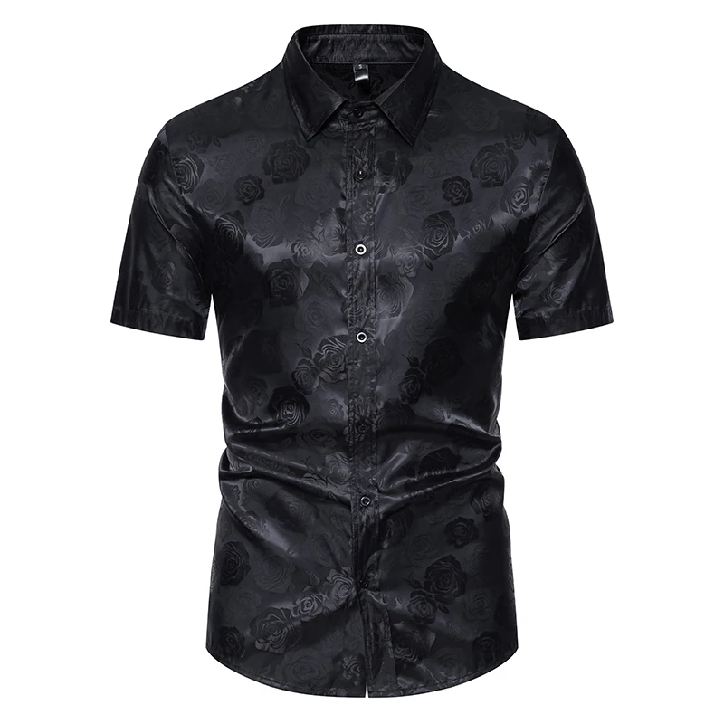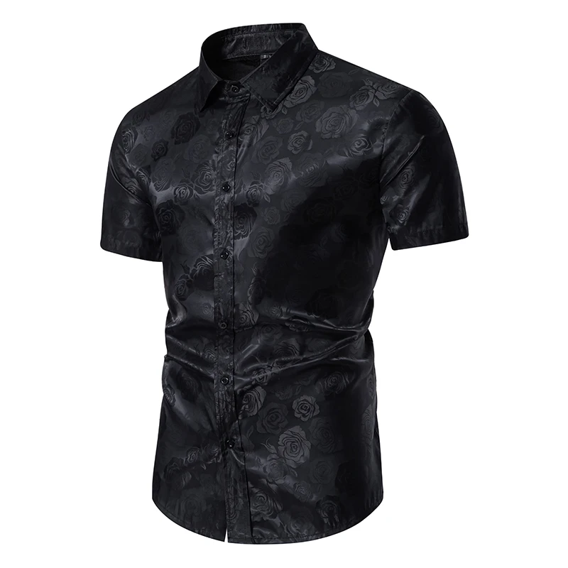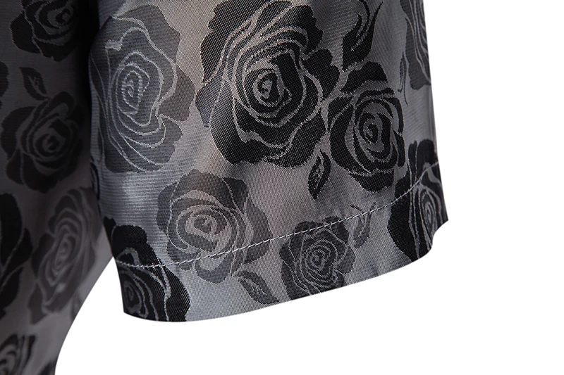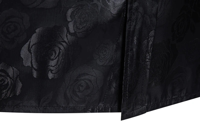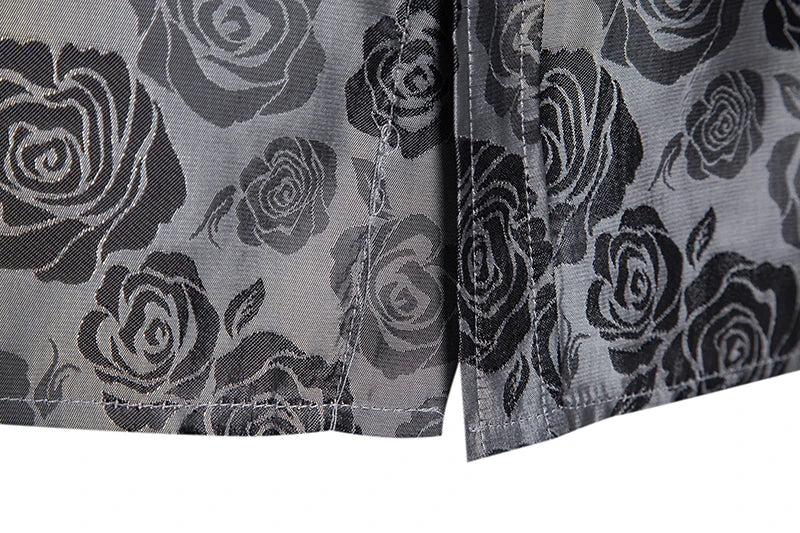 Shirt Men Fashion Gentleman Business Casual Slim Fit British Style Solid Color Button Rose Print Button Shirt Dress Shirt