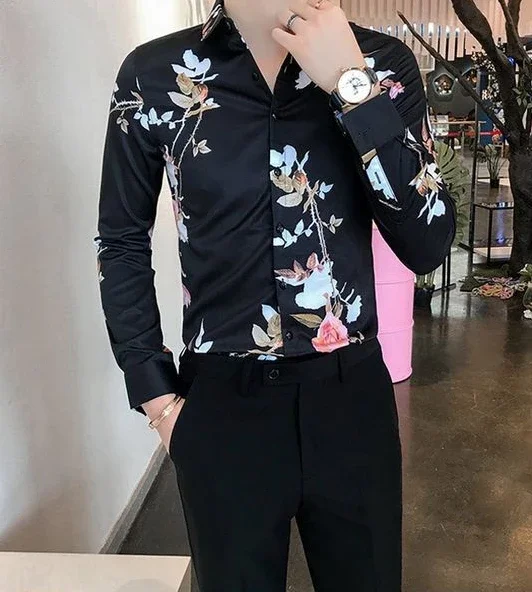 Shirts For Men White With Print Man Shirt Long Sleeve Printed New In Collar Asia S Korean Popular Clothes Trend Original Tops