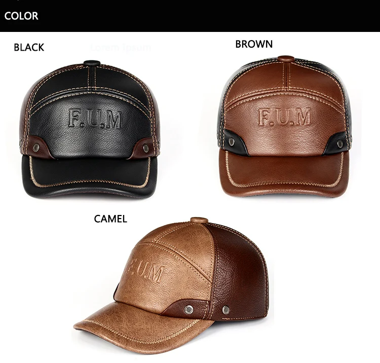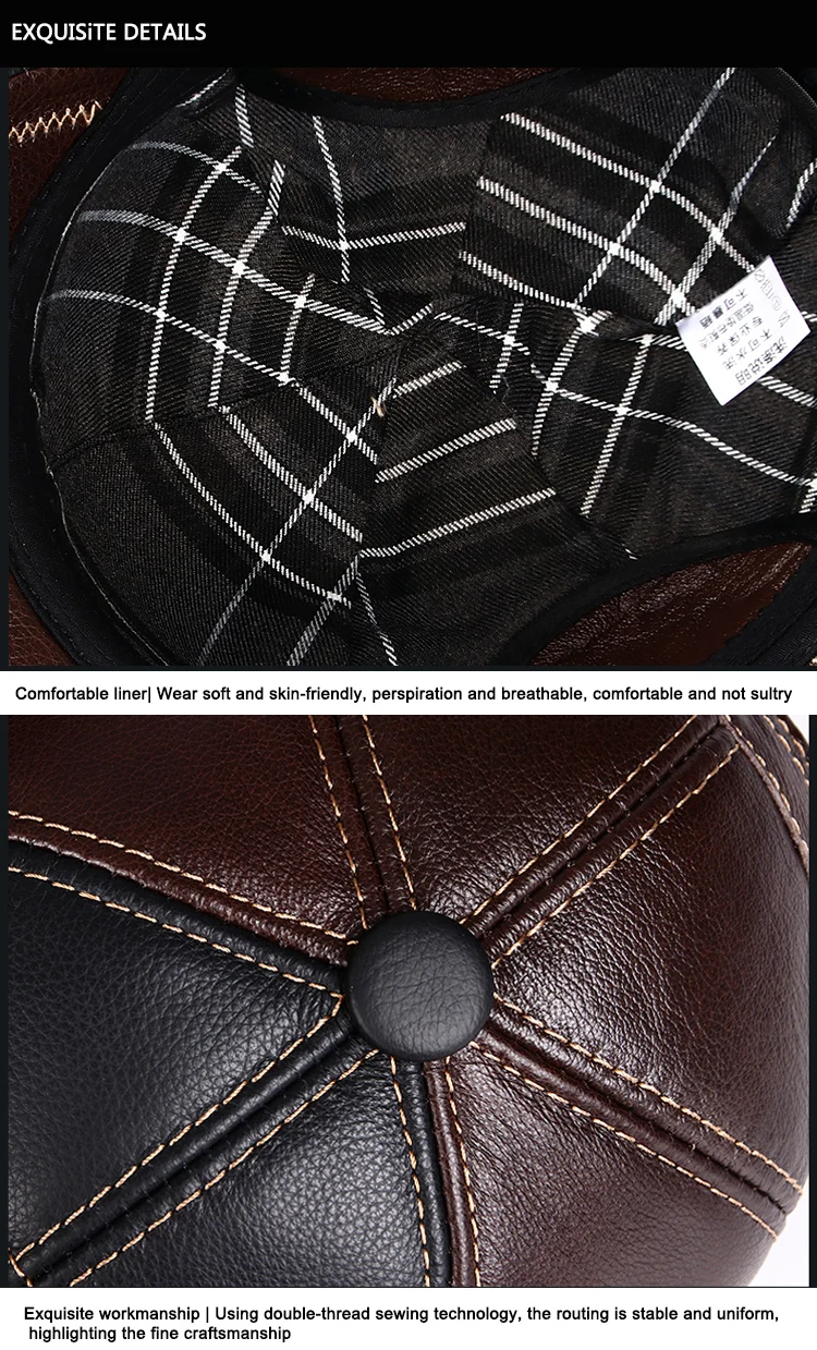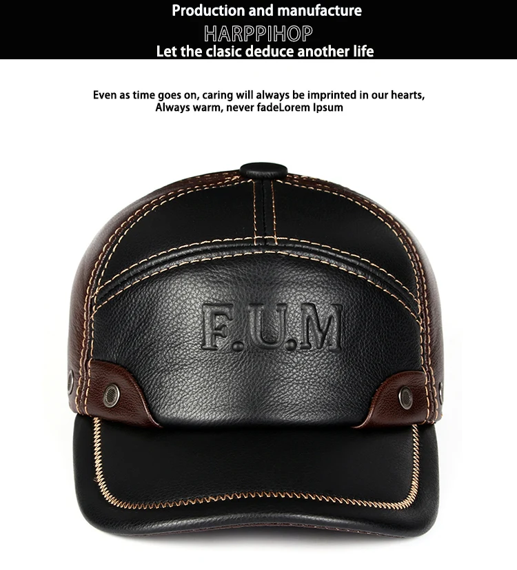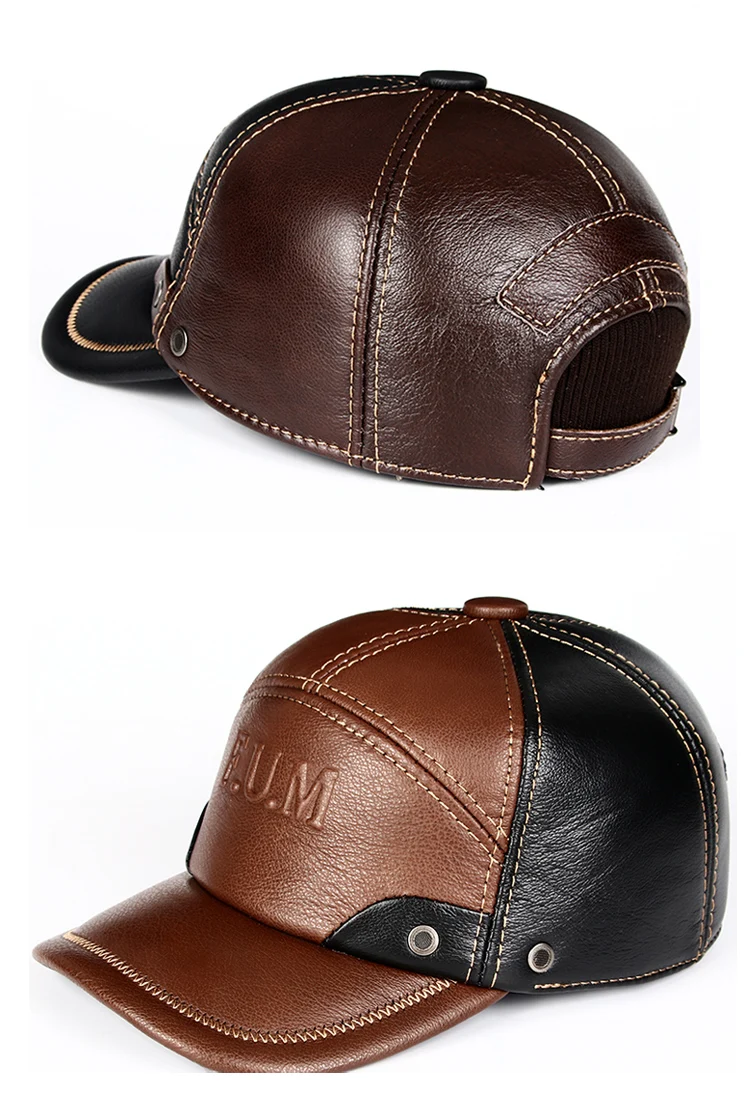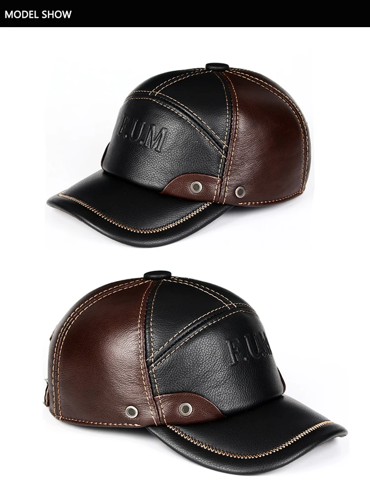Spring free shipping genuine leather baseball cap in men brand new warm real cow leather caps hats