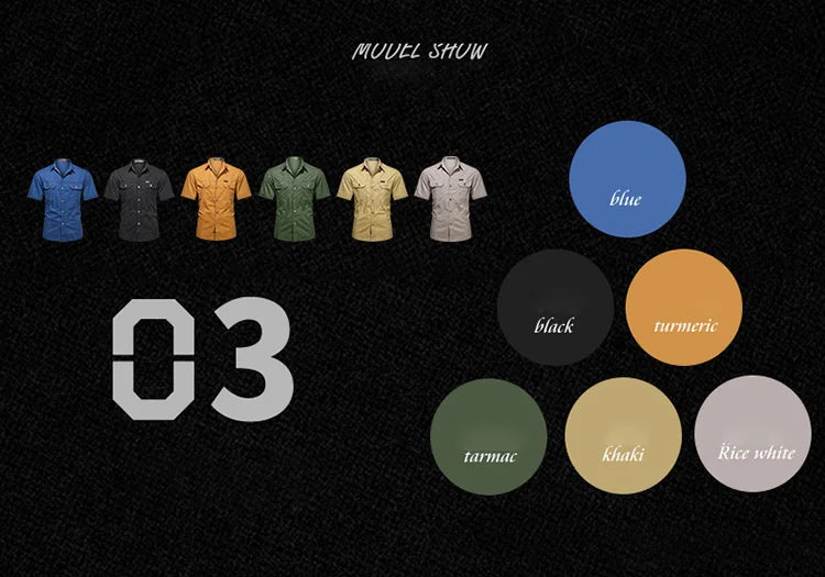 Summer men's thin short sleeved shirts, men's outdoor work clothes, multi bag half sleeved tops, pure cotton washed shirts