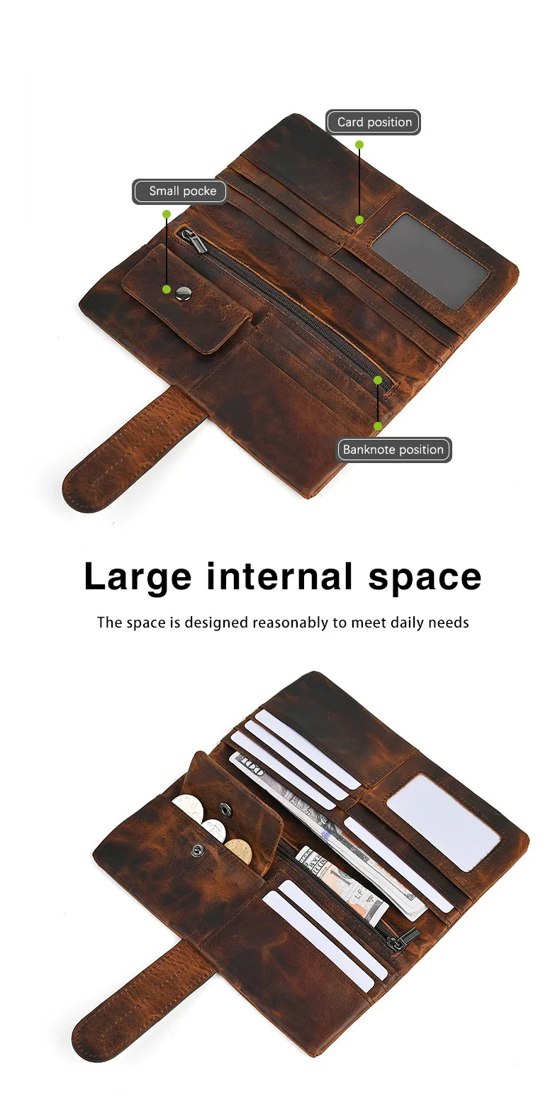 New,Retro,Men,Genuine,Leather,British,Style,Long,Top,Leather,Wallet,Men's,Casual,And,Versatile,Crazy,Horse,Leather,Wallets