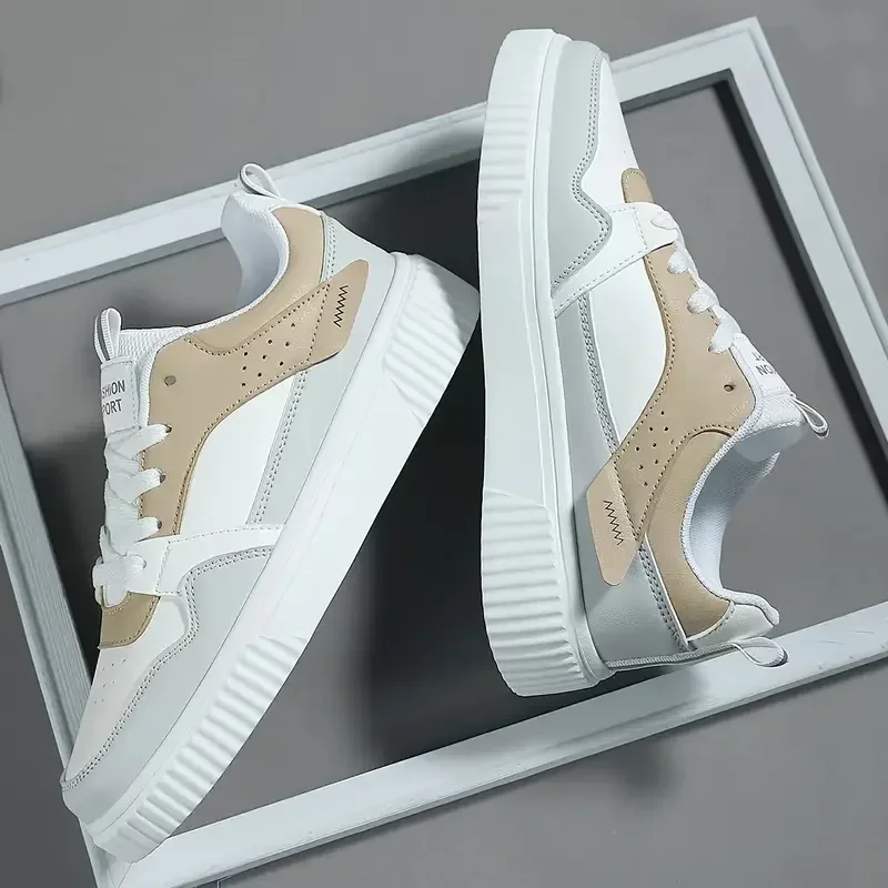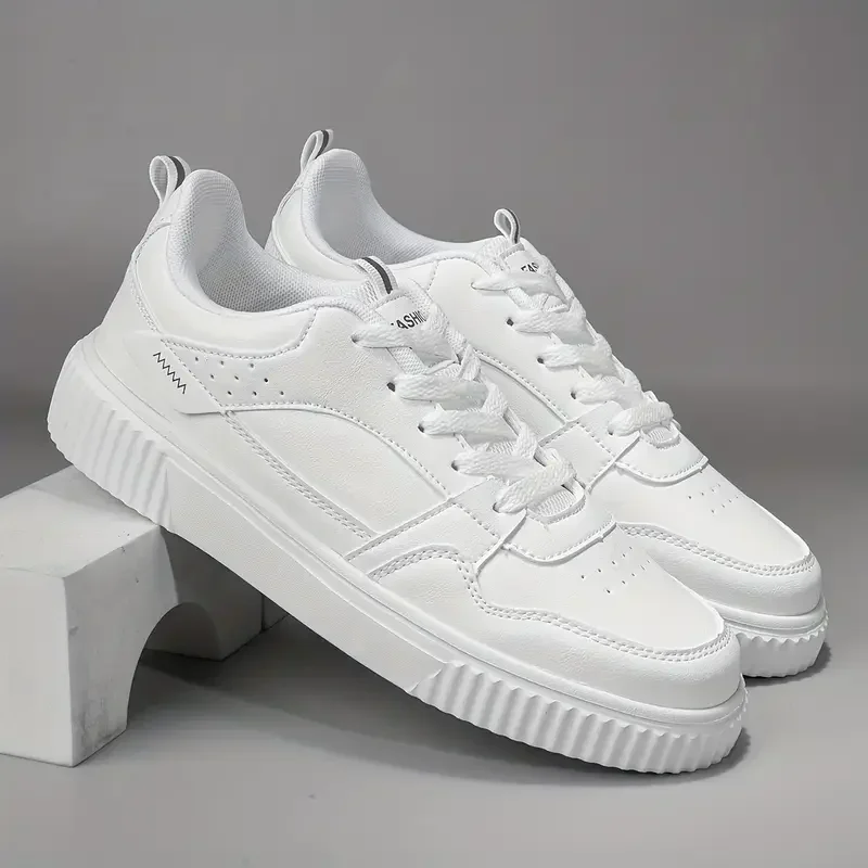 White Sneakers for Men New Casual Shoes PU Leather Tennis Shoe Non Slip Athletic Shoes Breathable Comfort Walking Shoes