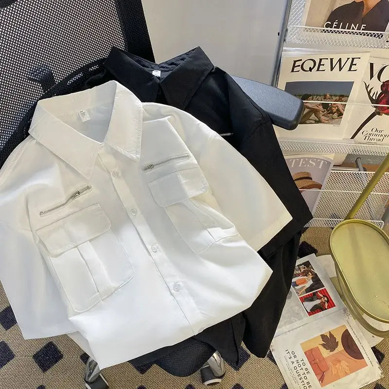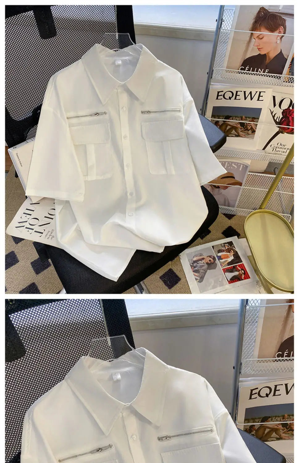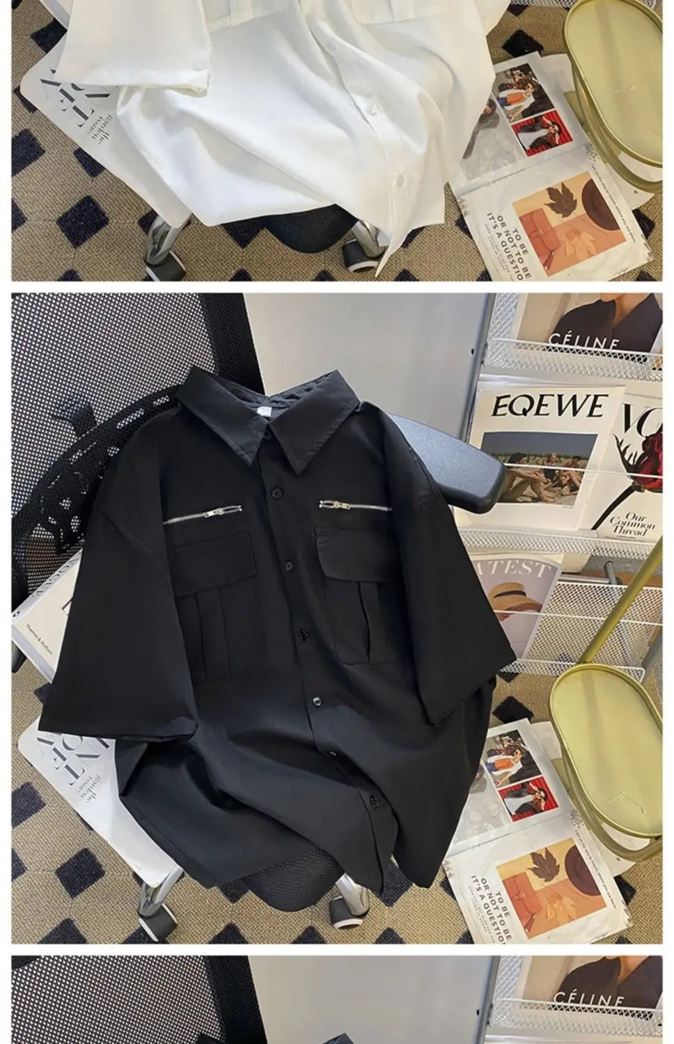 Working Short-sleeved Shirt Men's Summer High Street Niche High-end Design American Handsome Loose Casual Jacket