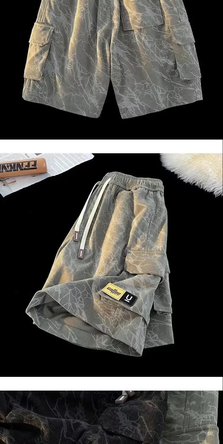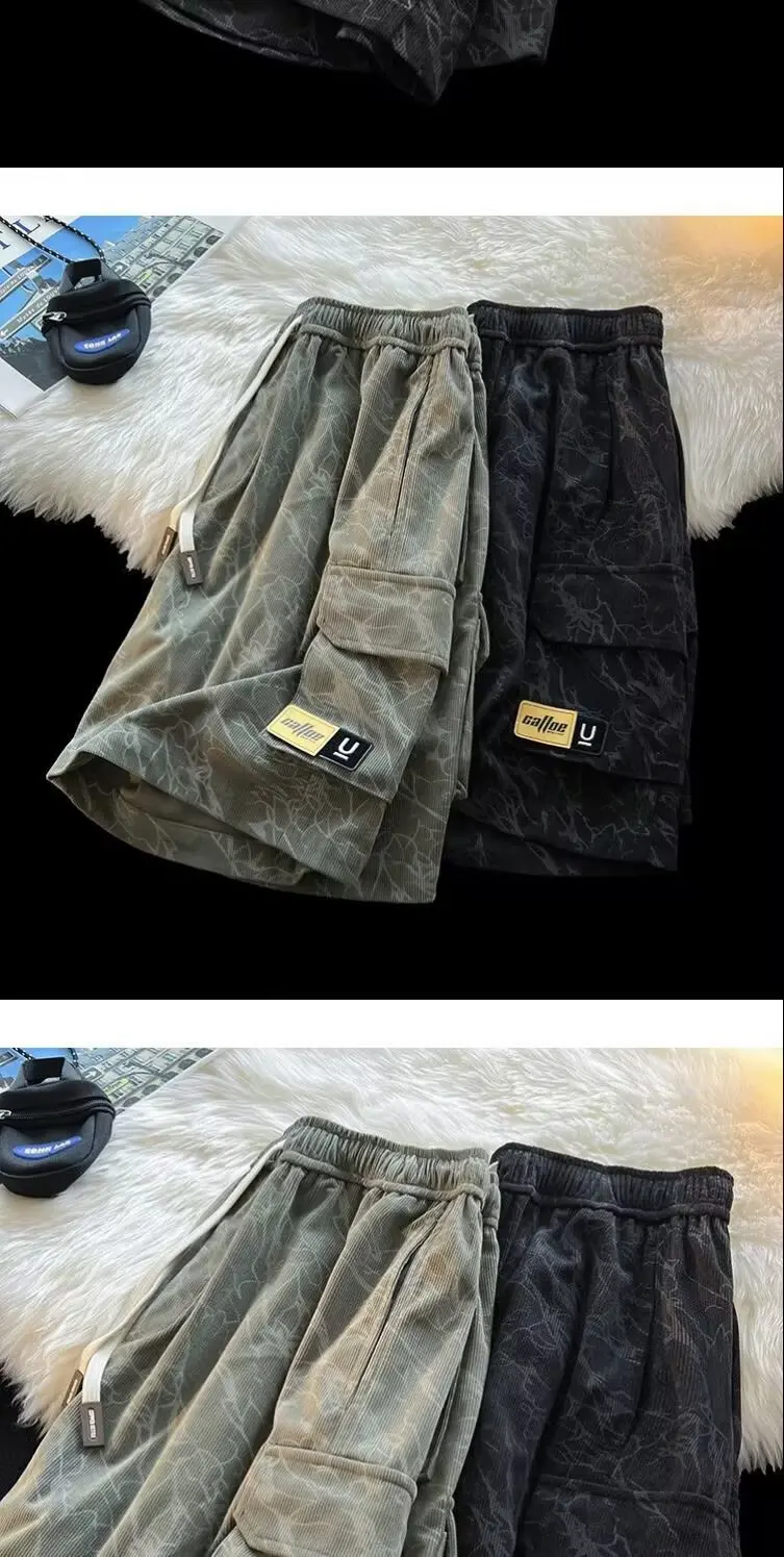 Working Shorts Men's 2025 New Summer Trendy American Functional Pants Loose Straight Five-point Pants Short Shorts for Man Jeans