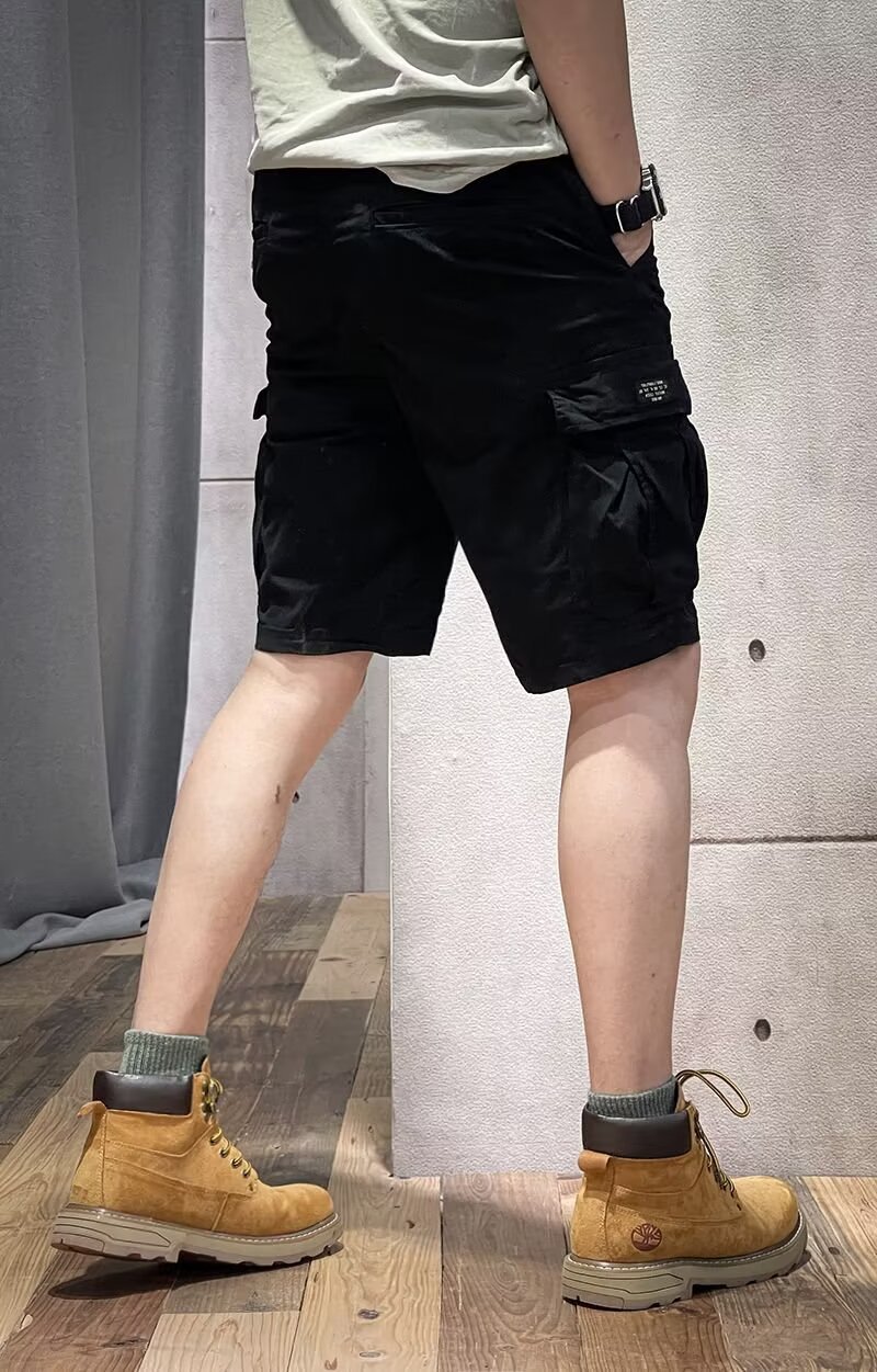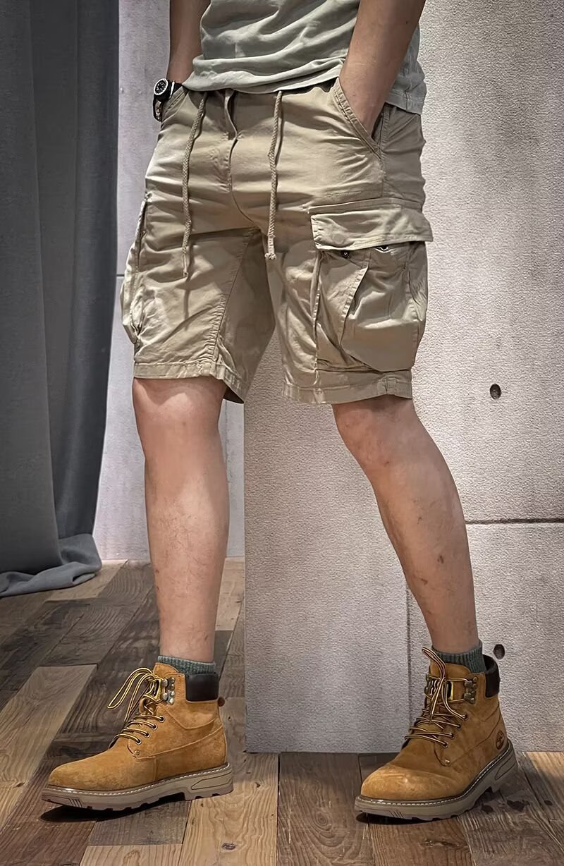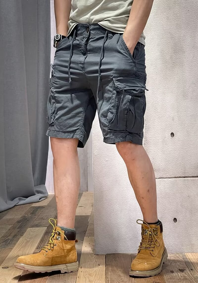 Working shorts men's summer thin five-point pants men's drawstring belt casual loose straight mid-pants multi-pocket pants